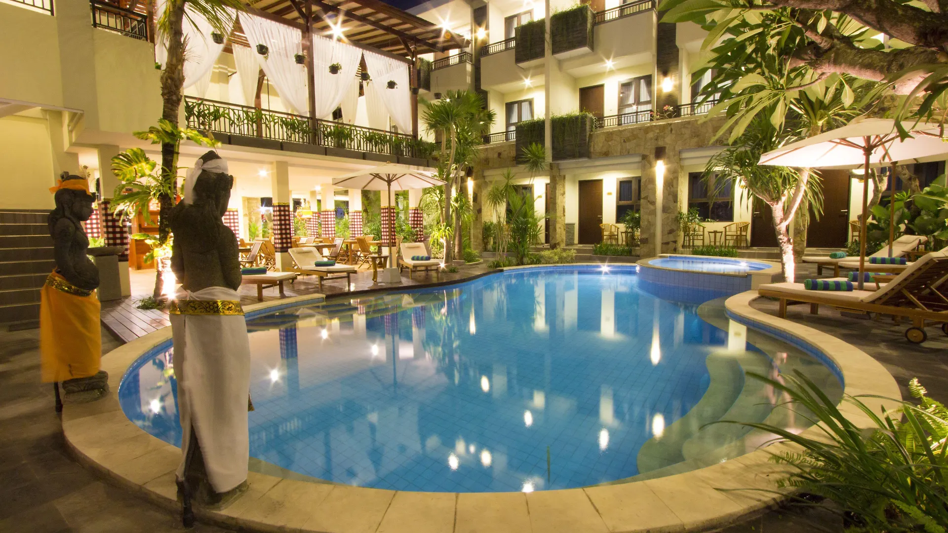Un endroit où loger super si vous êtes ici pour quelques nuits. Endroit incroyable, à distance de marche de la zone particulièrement agréable. À 10 minutes du Centre de Kuta. Un hôtel sans tache et un service amical.